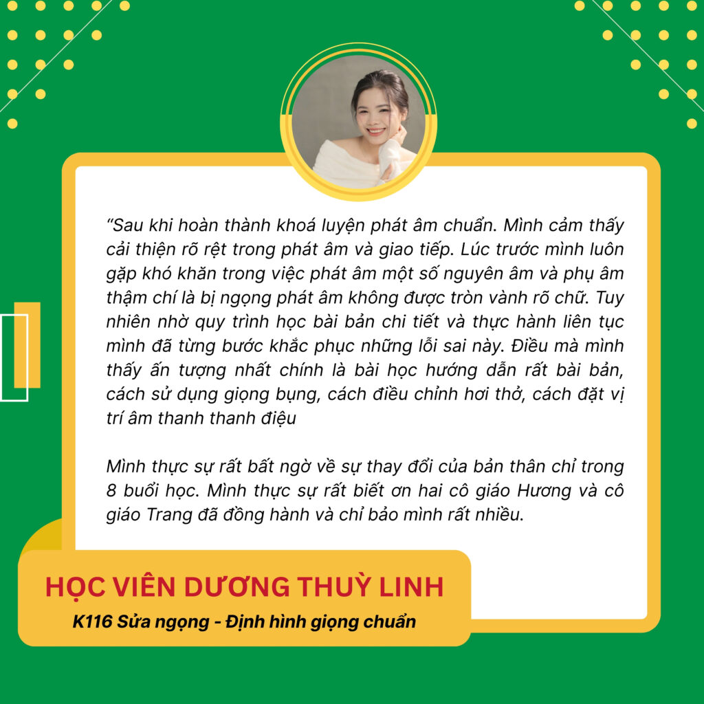 + Cải thiện được đến 80% các lỗi phát âm như ngọng L, N, O, A, E, sai dấu hỏi, ngã…
