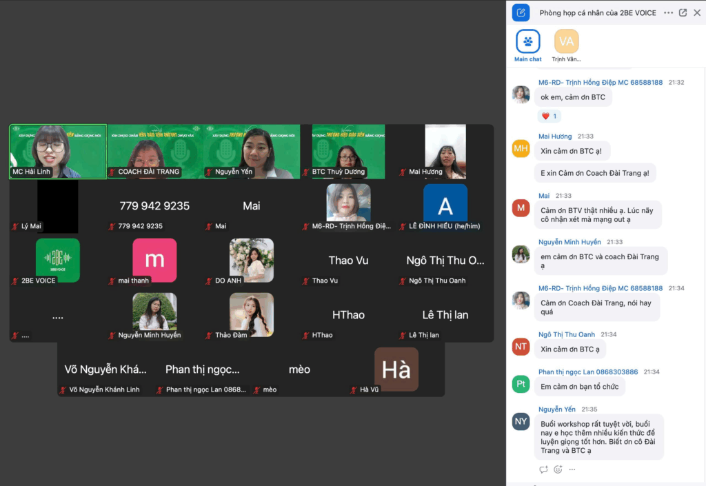 Workshop “Xây dựng thương hiệu giáo viên qua giọng nói” nhận được sự yêu mến đặc biệt từ người tham gia nhờ sự tận tâm và chuyên môn vững vàng của Coach Đài Trang. “Cô giáo sửa kỹ quá, từng lỗi nhỏ cũng không bỏ qua. Mình cảm giác được học đúng cái mình đang thiếu!” – một học viên chia sẻ sau buổi học.